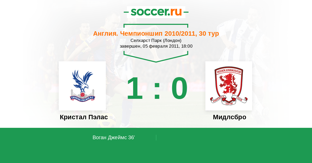 36' (1:0) Воган Джеймс (20)
