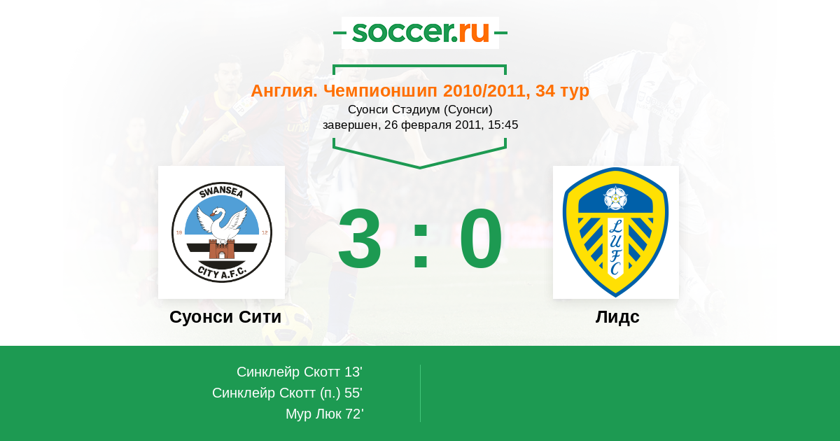 13' (1:0) Синклейр Скотт (21) (Мур Люк (19))