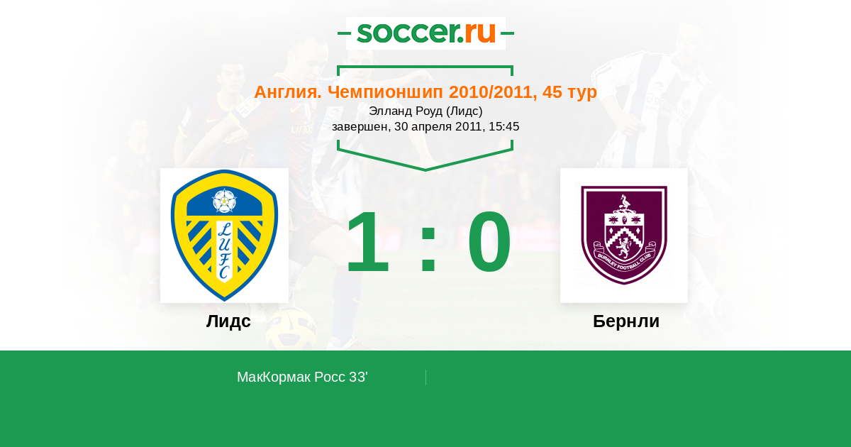 33' (1:0) МакКормак Росс (44) (Джонсон Брэдли (16))