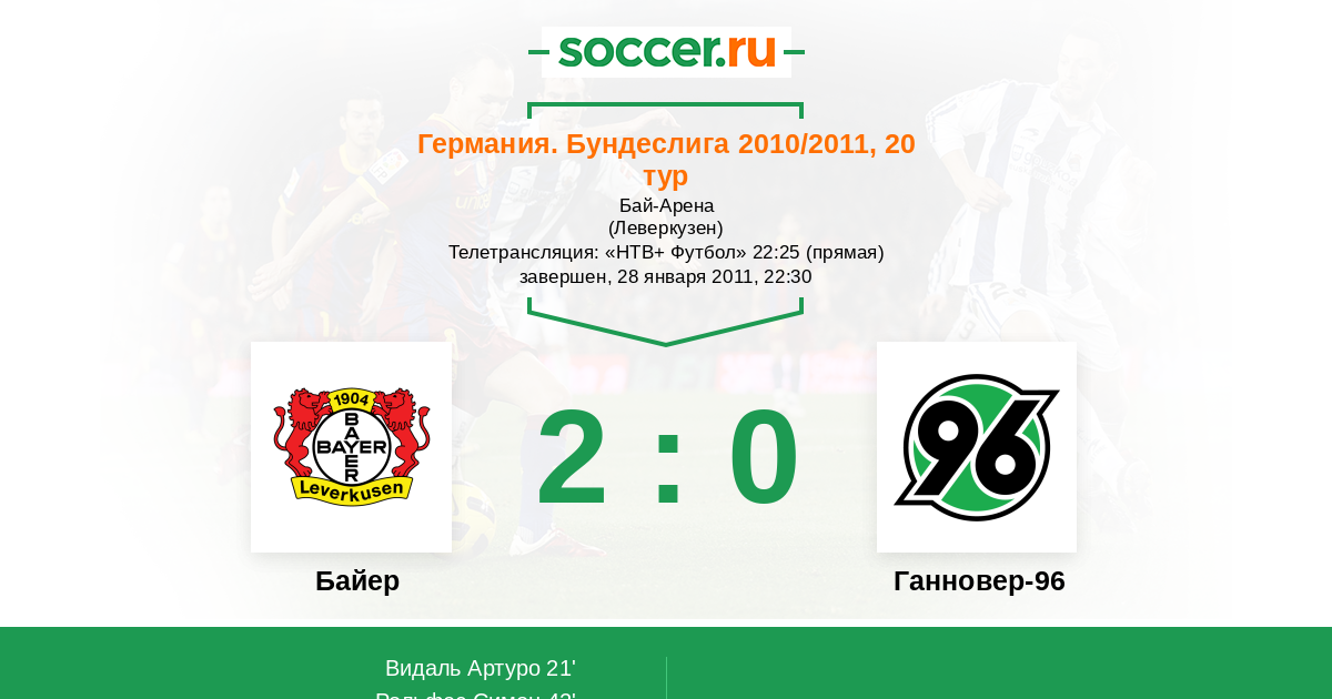 21' (1:0) Видаль Артуро (23) (Кисслинг Штефан (11))