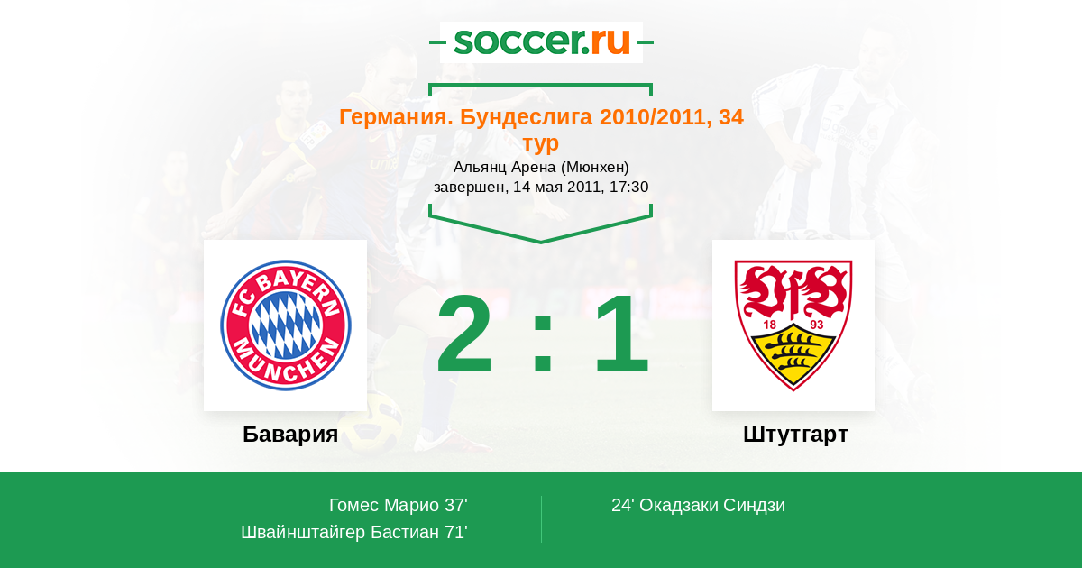 37' (1:1) Гомес Марио (33) (Роббен Арьен (10))