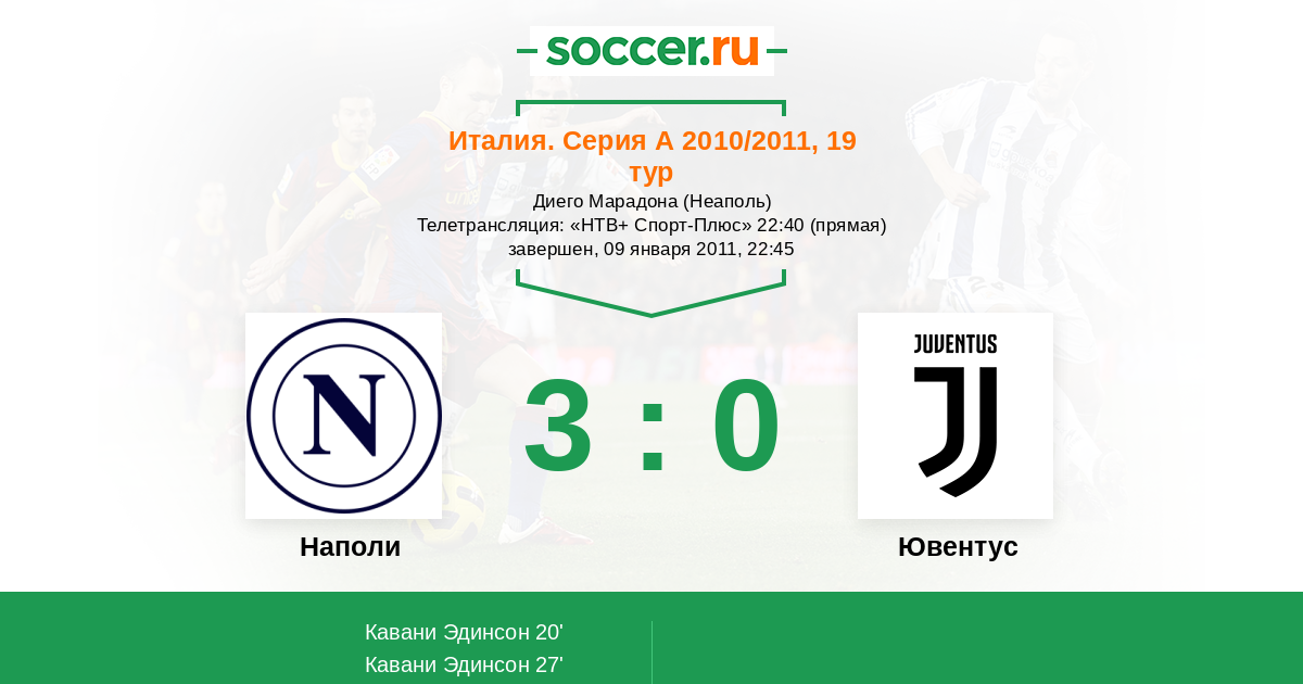 20' (1:0) Кавани Эдинсон (7) (Маджо Кристиан (11))