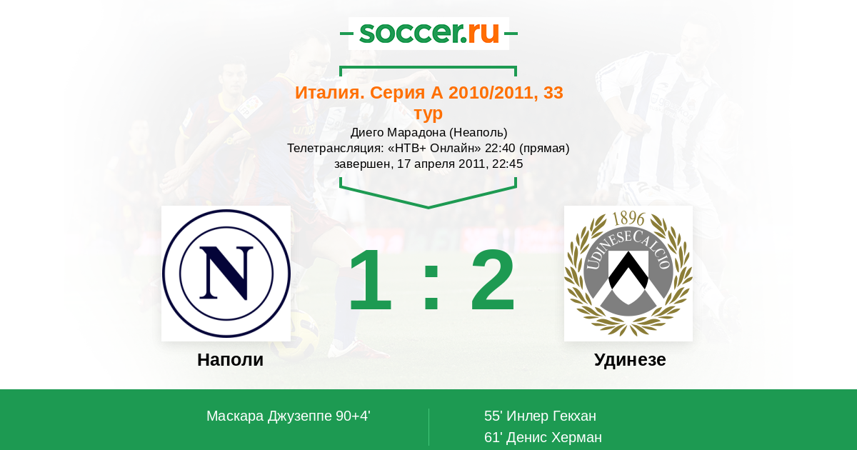 55' (0:1) Инлер Гекхан (88) (Паскуале Джованни (26))