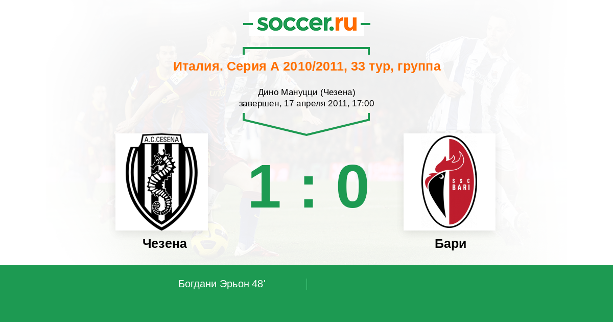 48' (1:0) Богдани Эрьон (70) (Джаккерини Эмануэле (23))