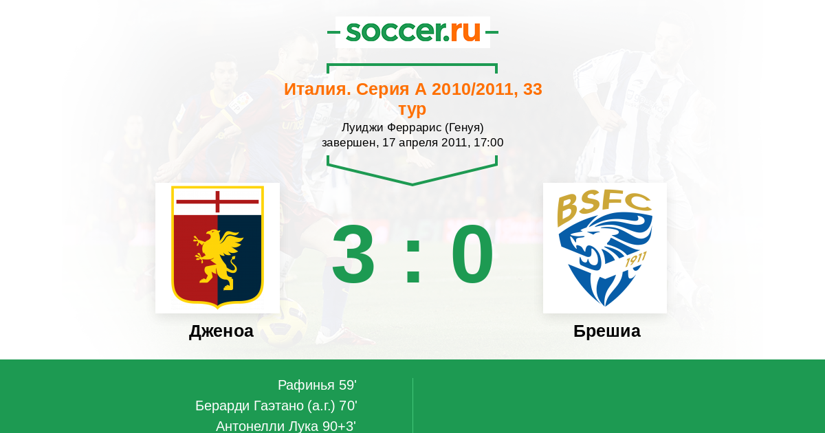 70' (2:0) Автогол Берарди Гаэтано (28)