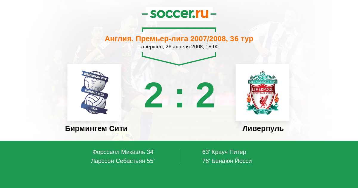 Матчи Англия. Премьер-лига 2007/2008