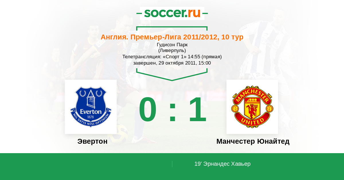19' (0:1) Эрнандес Хавьер (14) (Эвра Патрис (3))