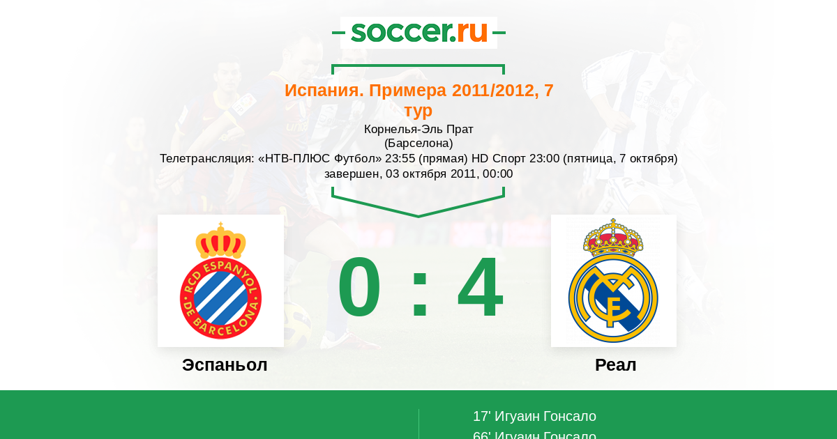 66' (0:2) Игуаин Гонсало (20) (Арбелоа Альваро (17))