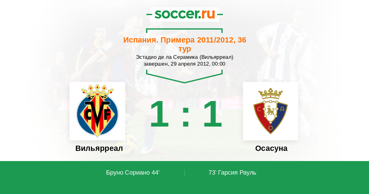 73' (1:1) Гарсия Рауль (14) (Лекич Деян (9))