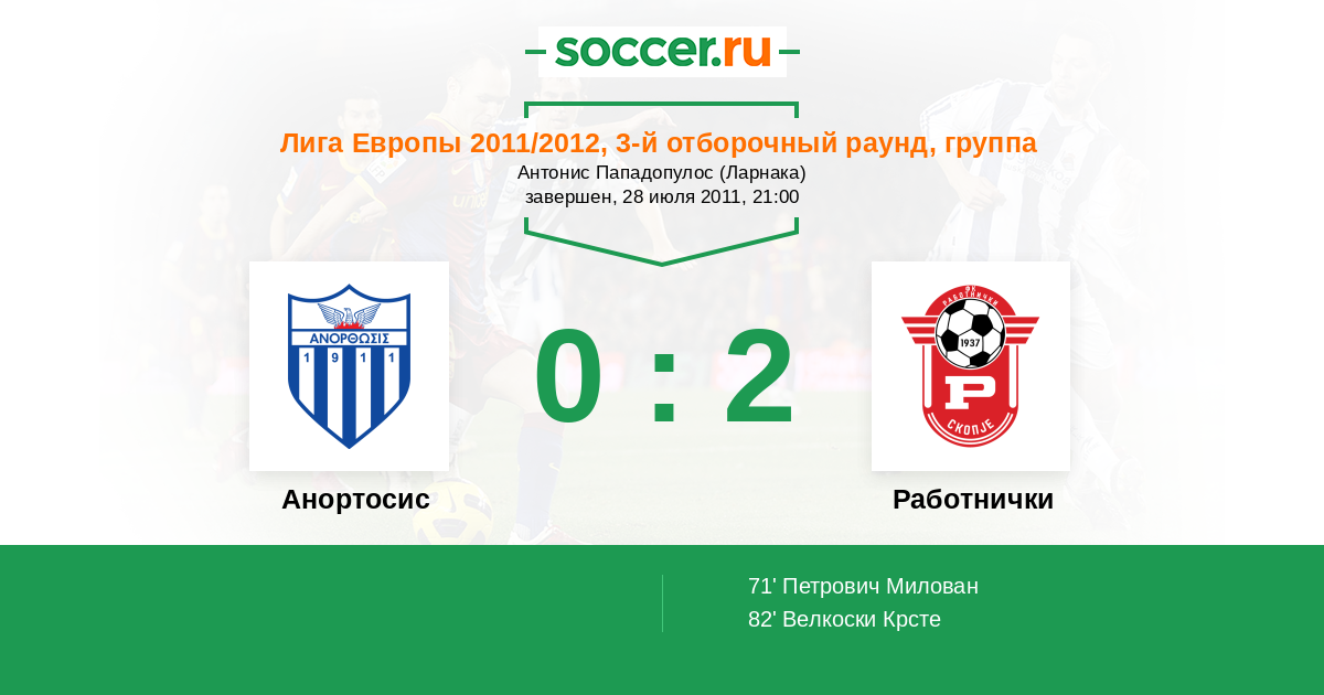 71' (0:1) Петрович Милован (17)
