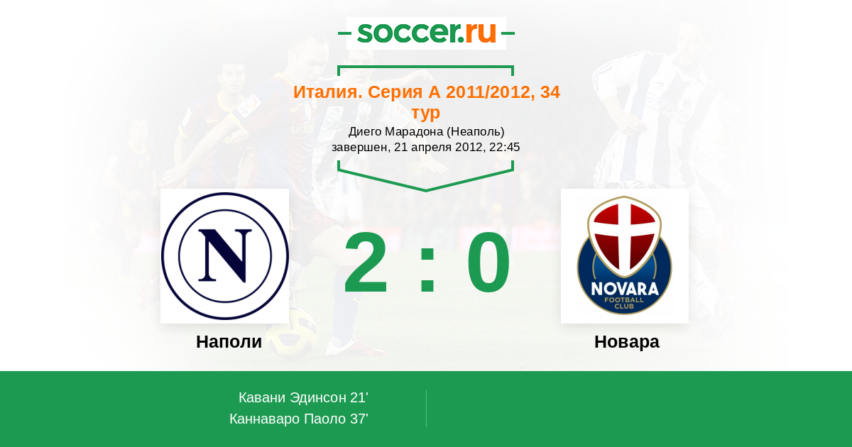 37' (2:0) Каннаваро Паоло (28) (Кавани Эдинсон (7))