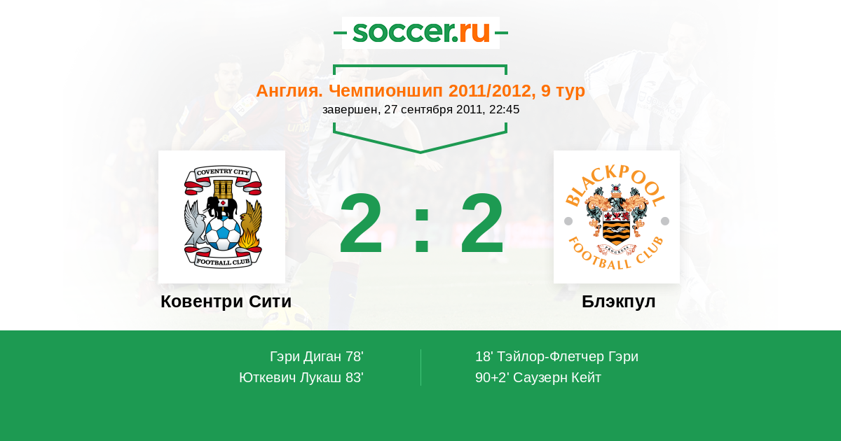 78' (1:1) Гэри Диган (12)