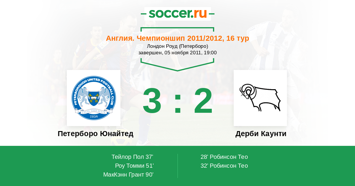 32' (0:2) Робинсон Тео (21) (Уорд Джейми (10))