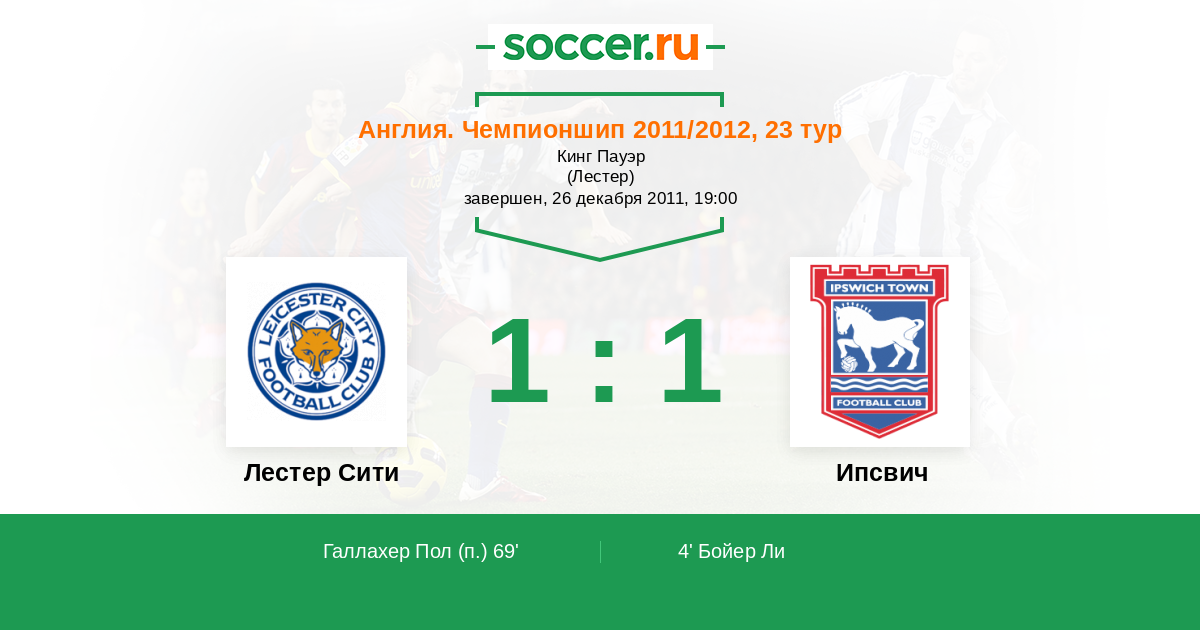 69' (1:1) Галлахер Пол (7)