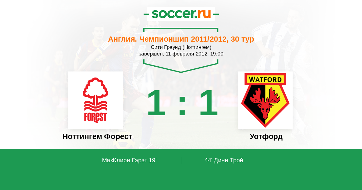 19' (1:0) МакКлири Гэрэт (12) (Элокоби Джордж (26))