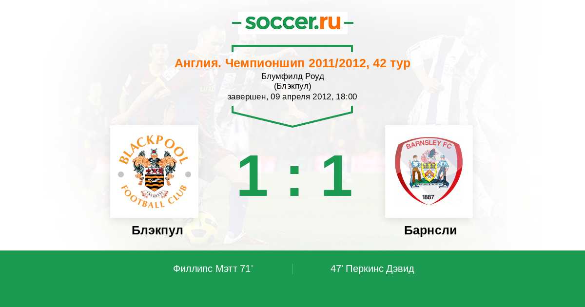 47' (0:1) Перкинс Дэвид (11) (Джим О'Брайен (8))