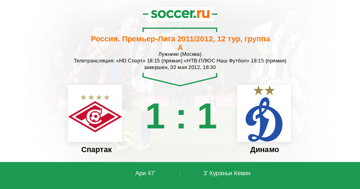 Телетрансляция: «HD Спорт» 18:15 (прямая) «НТВ-ПЛЮС Наш Футбол» 18:15 (прямая)