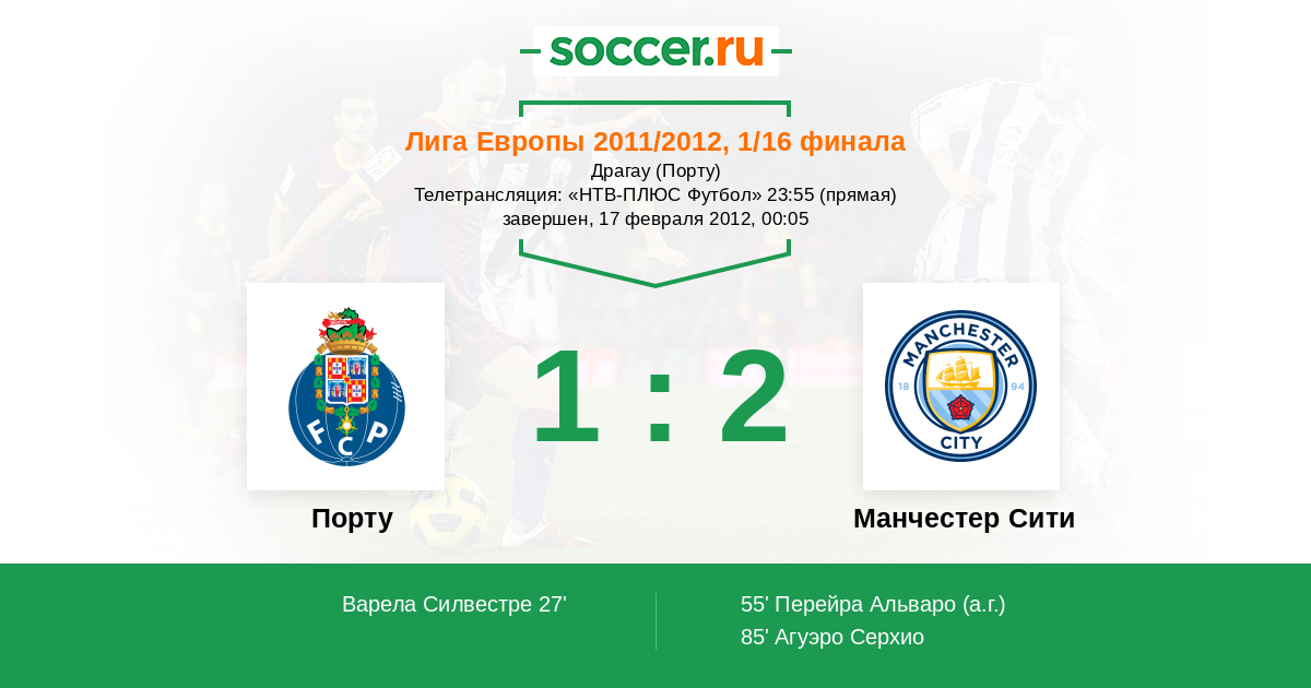 85' (1:2) Агуэро Серхио (16) (Туре Яя (42))