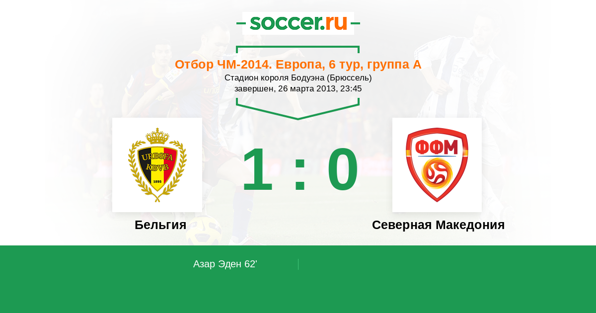 Азар Эден 1:0 62’