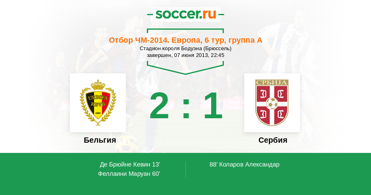 13' (1:0) Де Брюйне Кевин (Вертонген Ян)