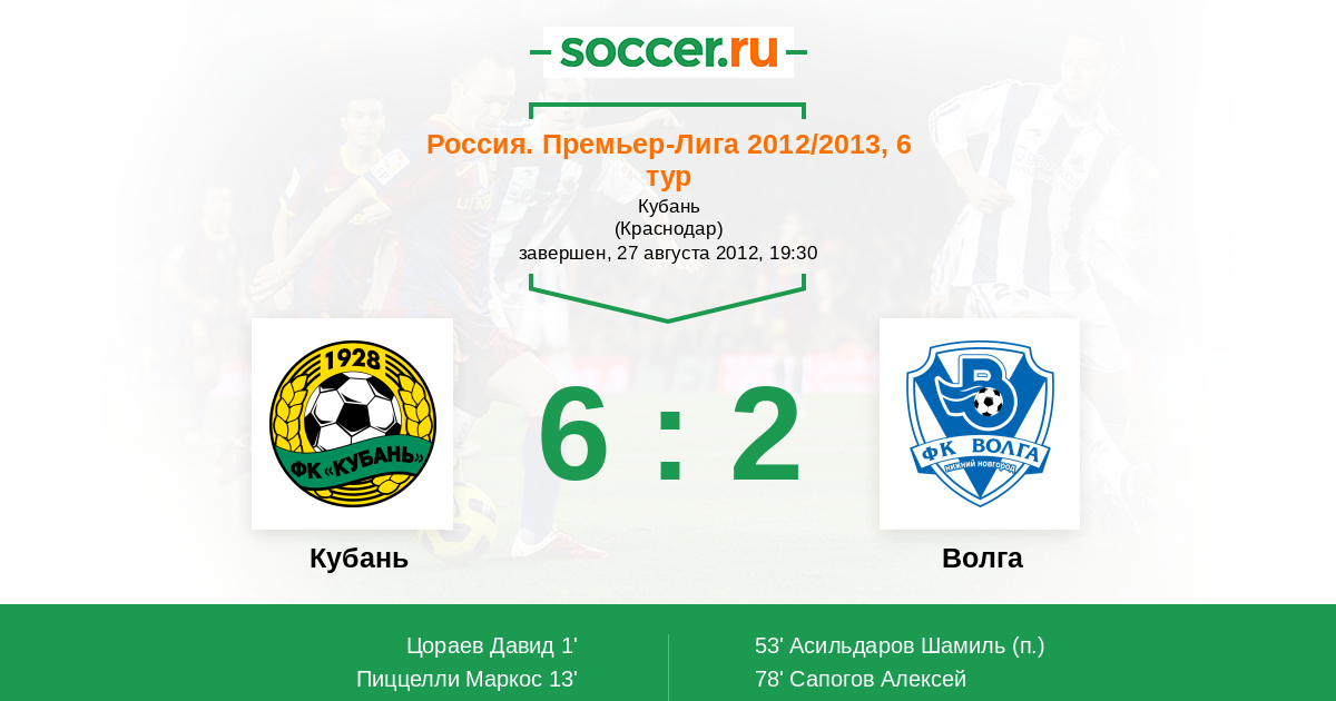 1' (1:0) Цораев Давид (6) (Пиццелли Маркос (30))