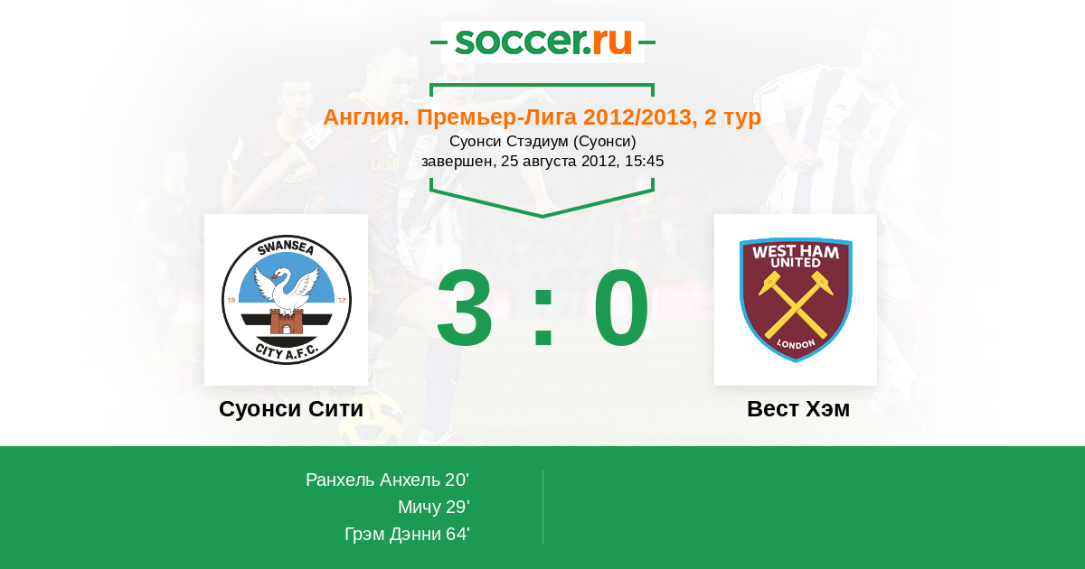 20' (1:0) Ранхель Анхель (22) (Дайер Натан (12))