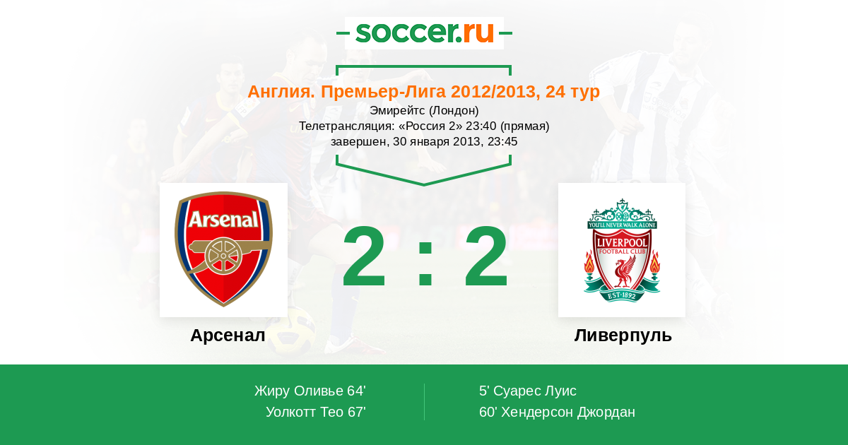 67' (2:2) Уолкотт Тео (14) (Жиру Оливье (12))