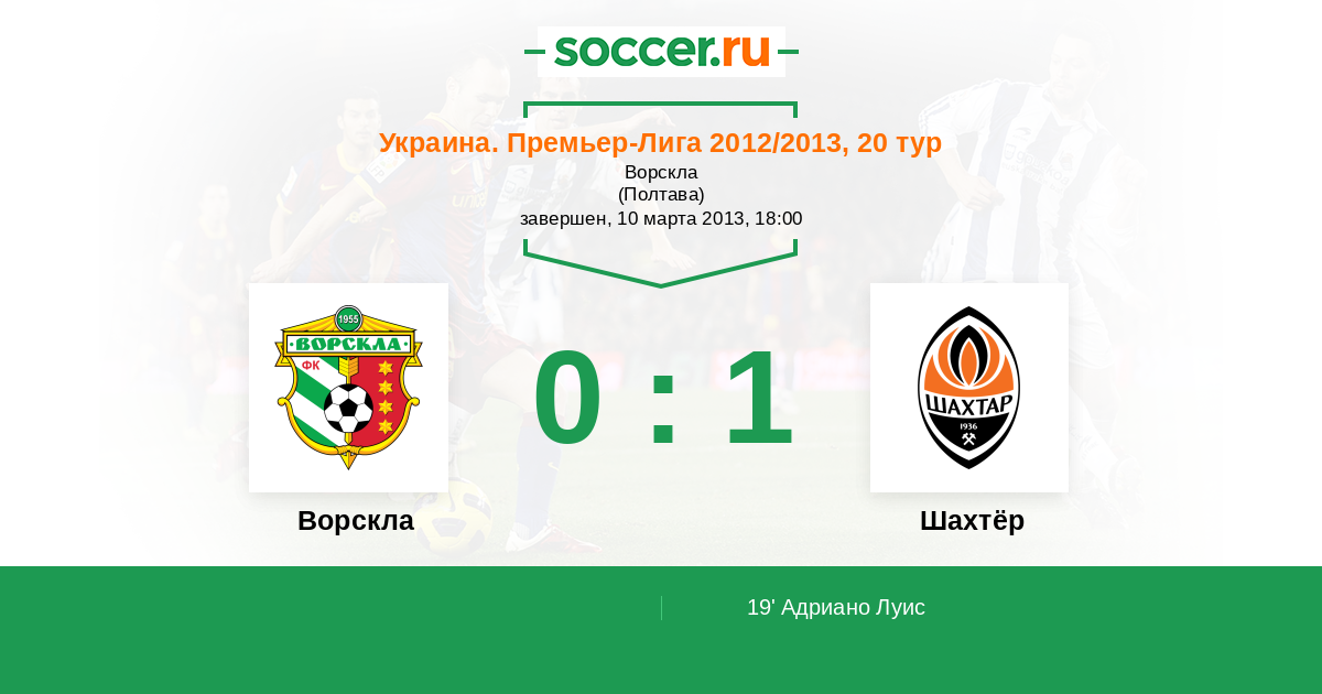 19' (0:1) Адриано Луис (9) (Шевчук Вячеслав (13))