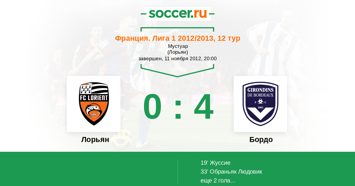 33' (0:2) Обраньяк Людовик (4) (Жуссие (10))