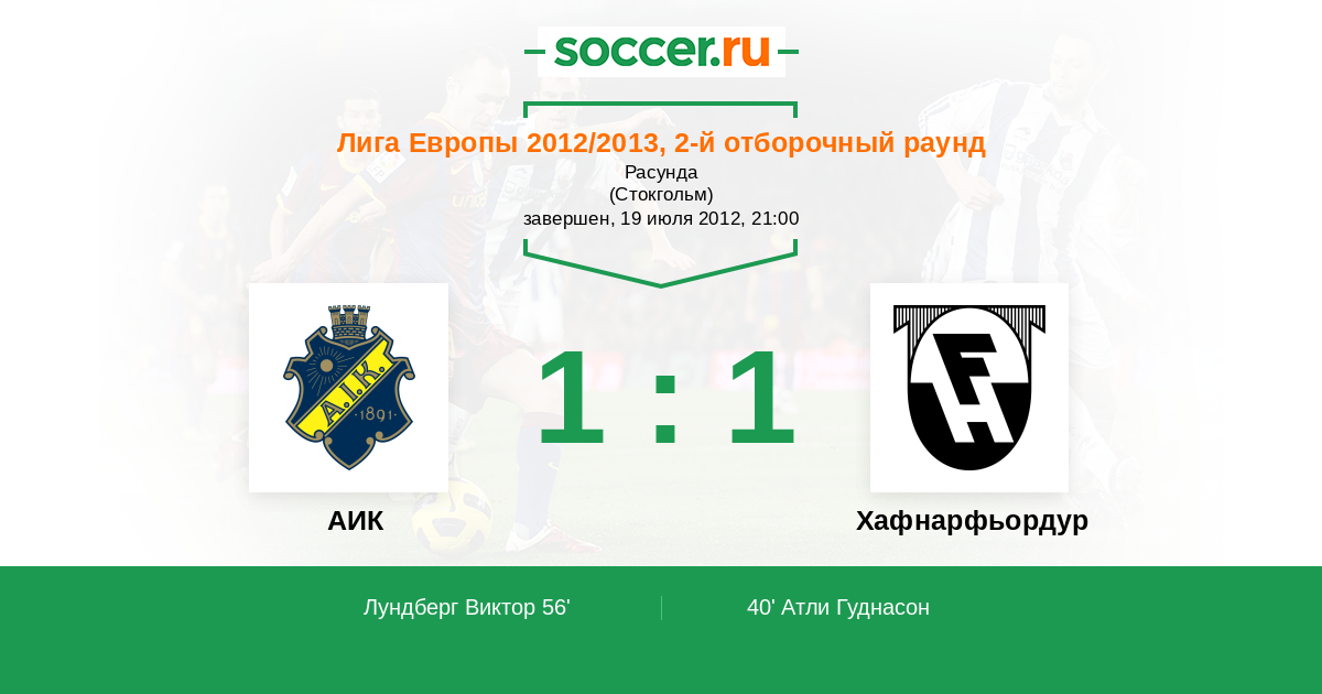 40' (0:1) Атли Гуднасон