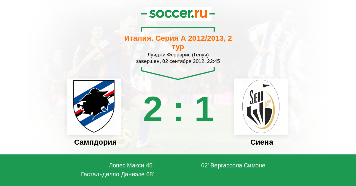 45' (1:0) Лопес Макси (10) (Берарди Гаэтано (13))
