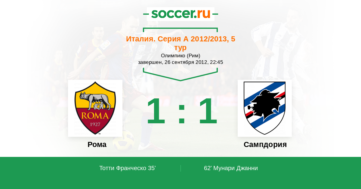 35' (1:0) Тотти Франческо (10) (Флоренци Алессандро (48))