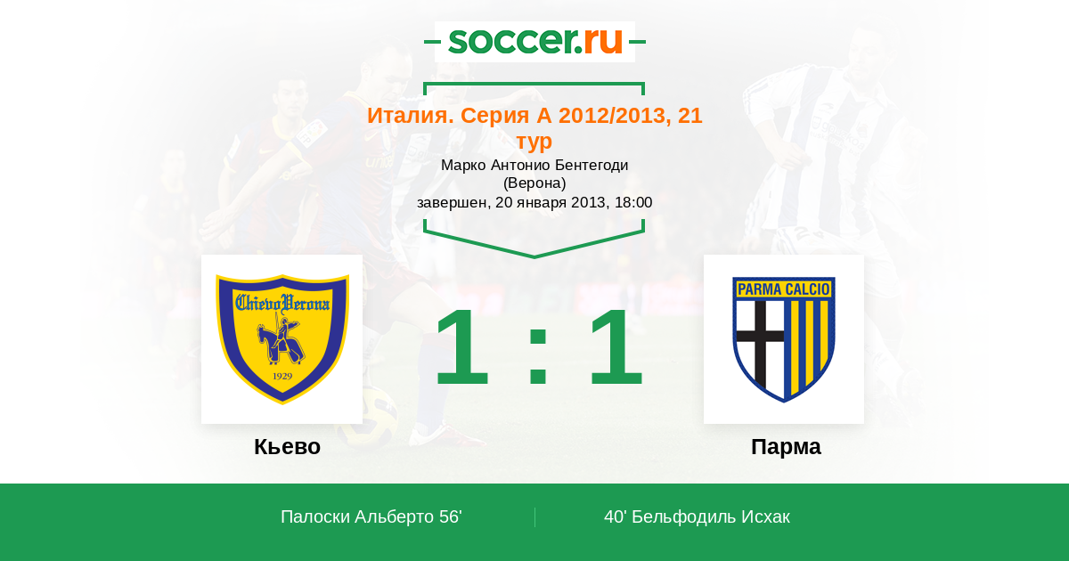 40' (0:1) Бельфодиль Исхак (9) (Сансоне Никола (21))