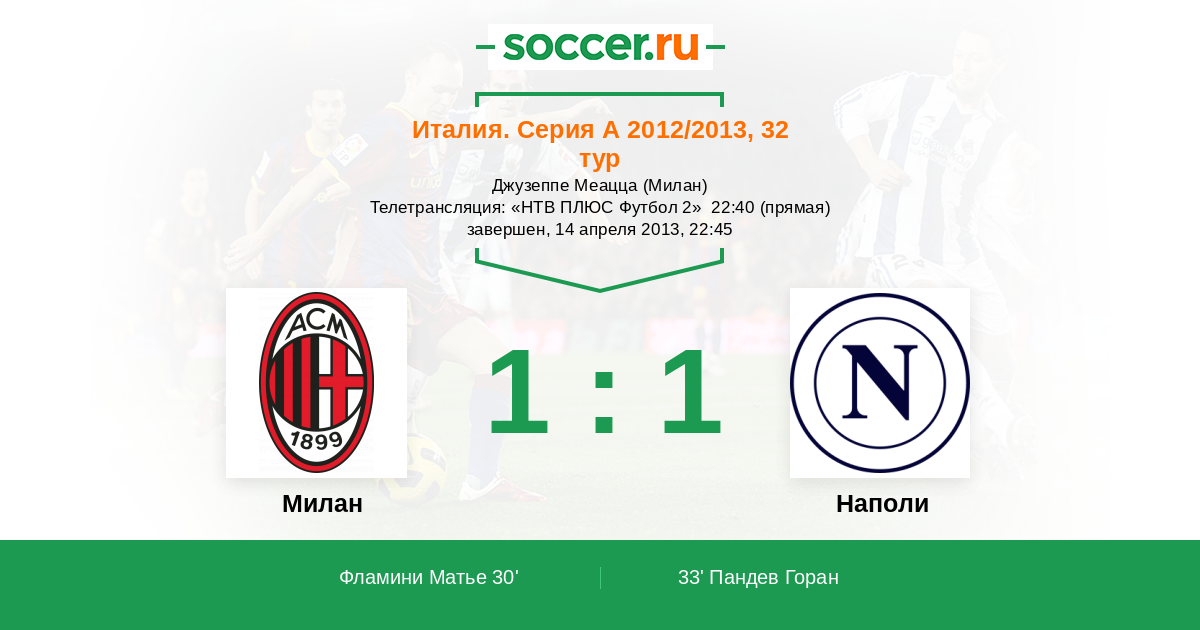 Телетрансляция: «НТВ ПЛЮС Футбол 2» 22:40 (прямая)