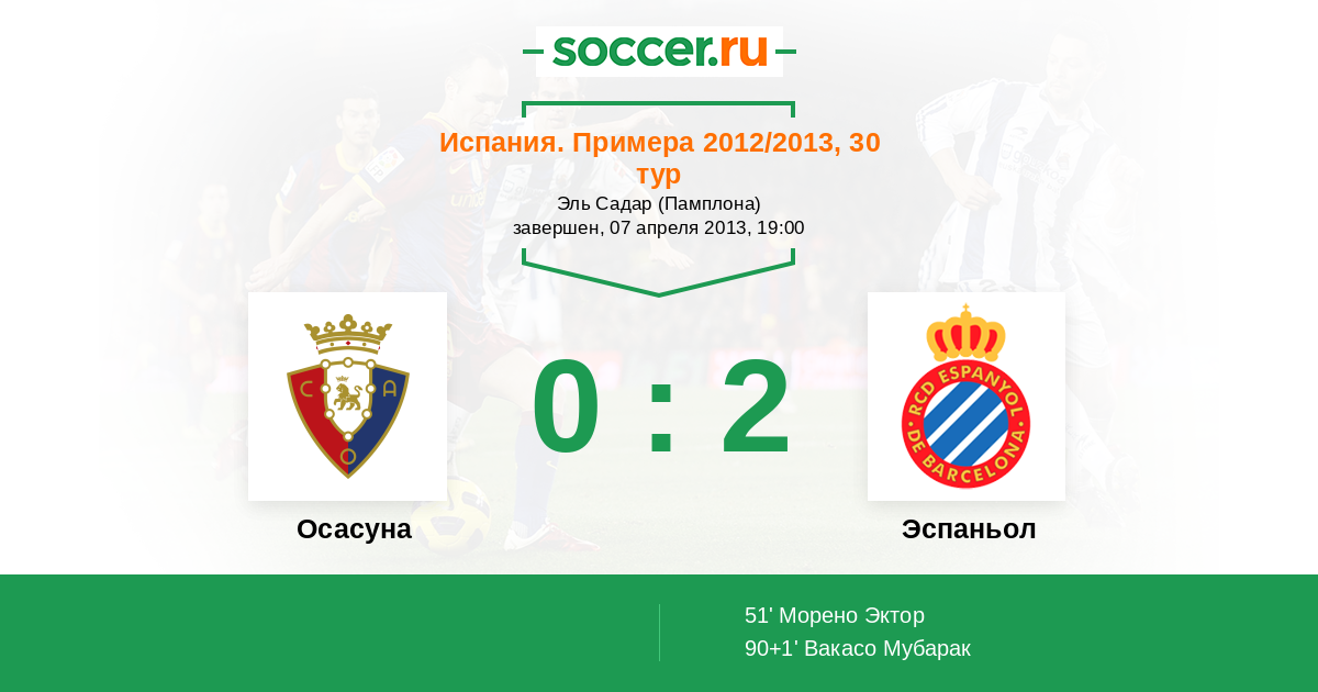 51' (0:1) Морено Эктор (15) (Вакасо Мубарак (22))