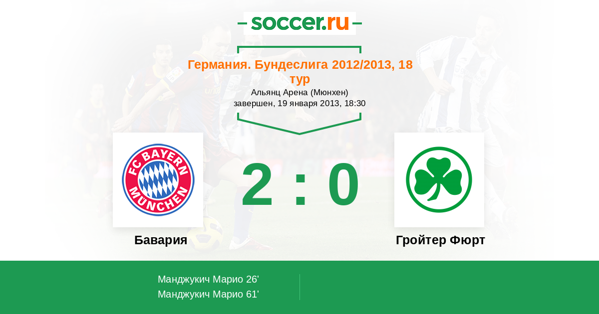 26' (1:0) Манджукич Марио (9) (Мюллер Томас (25))