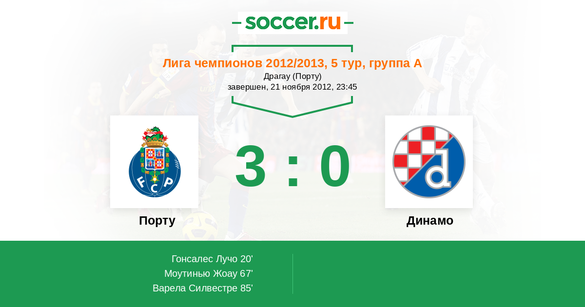 20' (1:0) Гонсалес Лучо (3) (Моутинью Жоау (8))