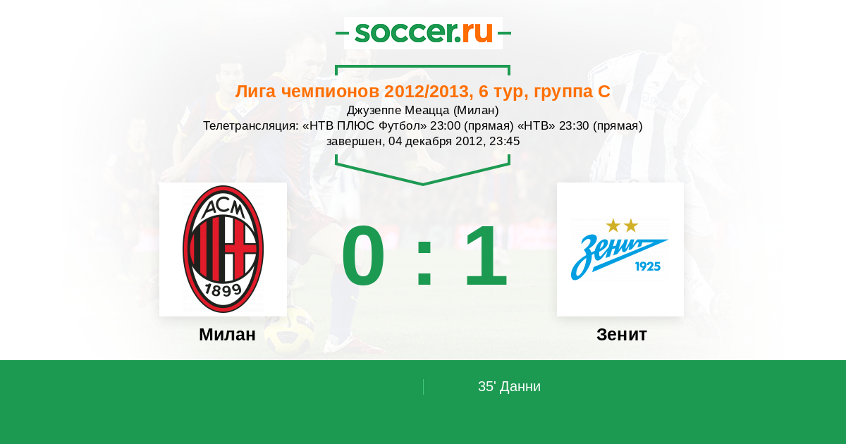 Телетрансляция: «НТВ ПЛЮС Футбол» 23:00 (прямая) «НТВ» 23:30 (прямая)