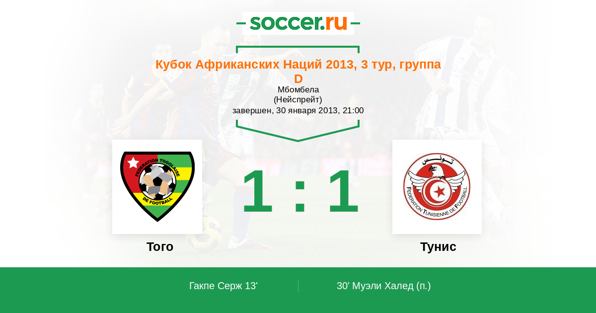 13' (1:0) Гакпе Серж (17) (Адебайор Эммануэль (4))