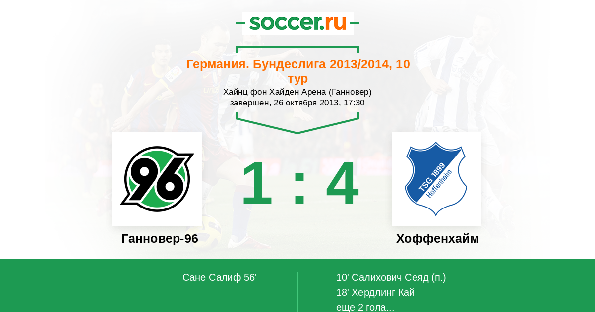 64' (1:4) Фирмино Роберто (10) (Шипплок Свен (9))