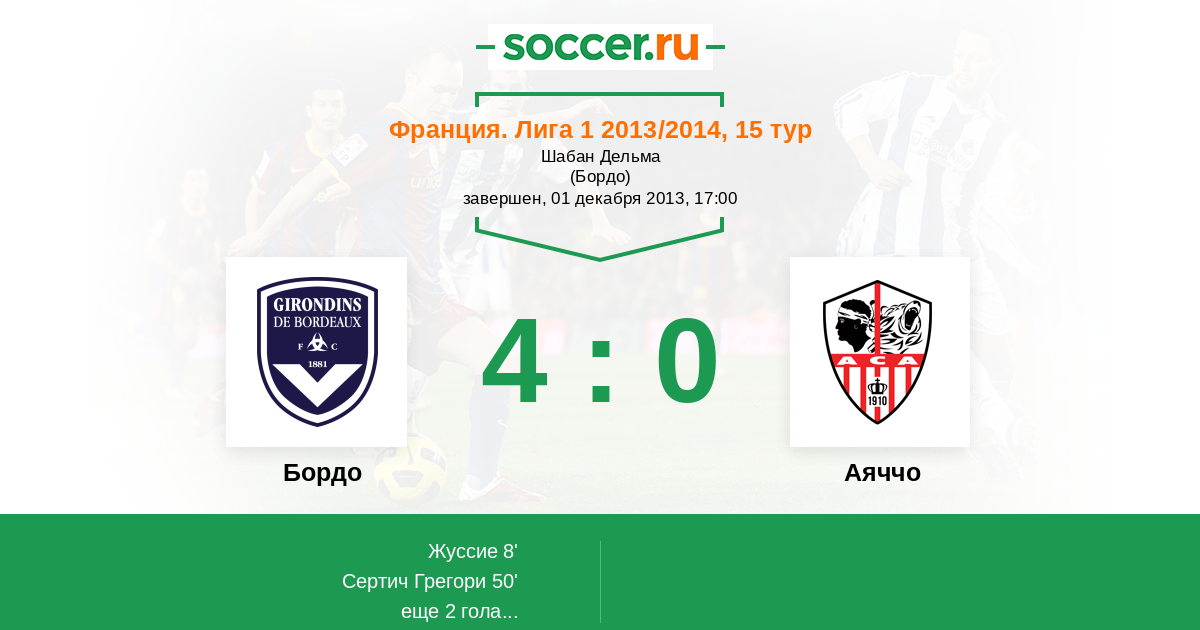 68' (4:0) Жуссие (20) (Сертич Грегори (26))