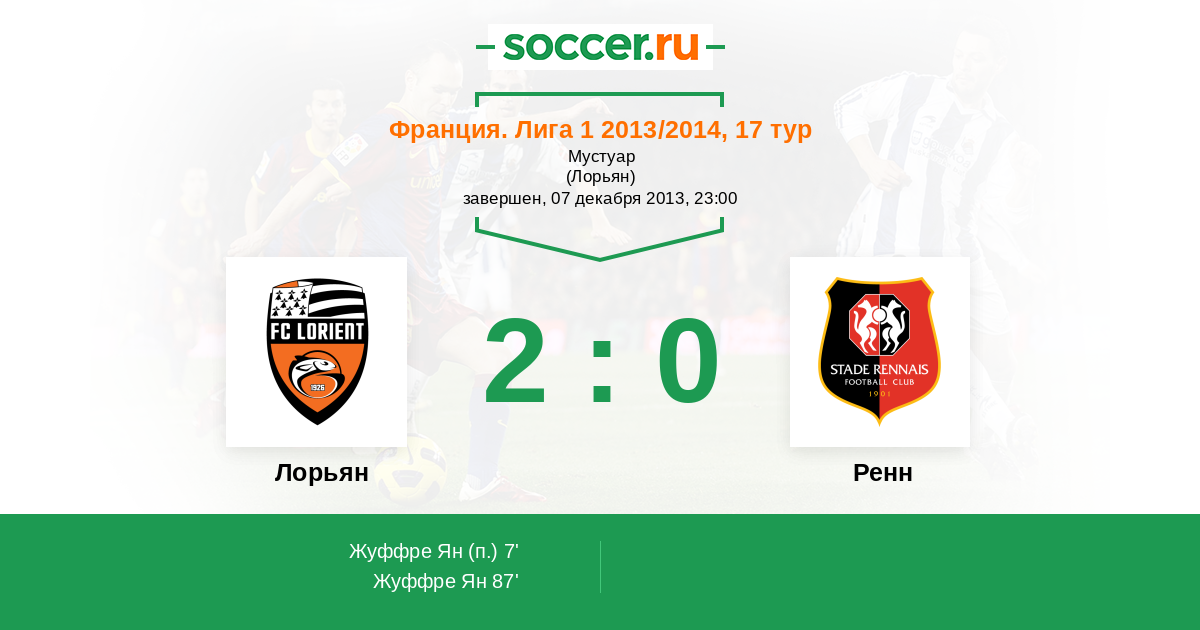 87' (2:0) Жуффре Ян (8) (Алиадьер Джереми (11))