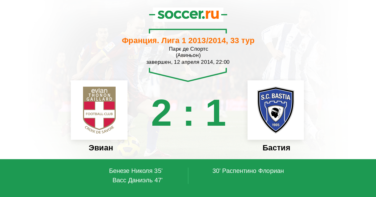 35' (1:1) Бенезе Николя (10) (Берижо Кевин (9))