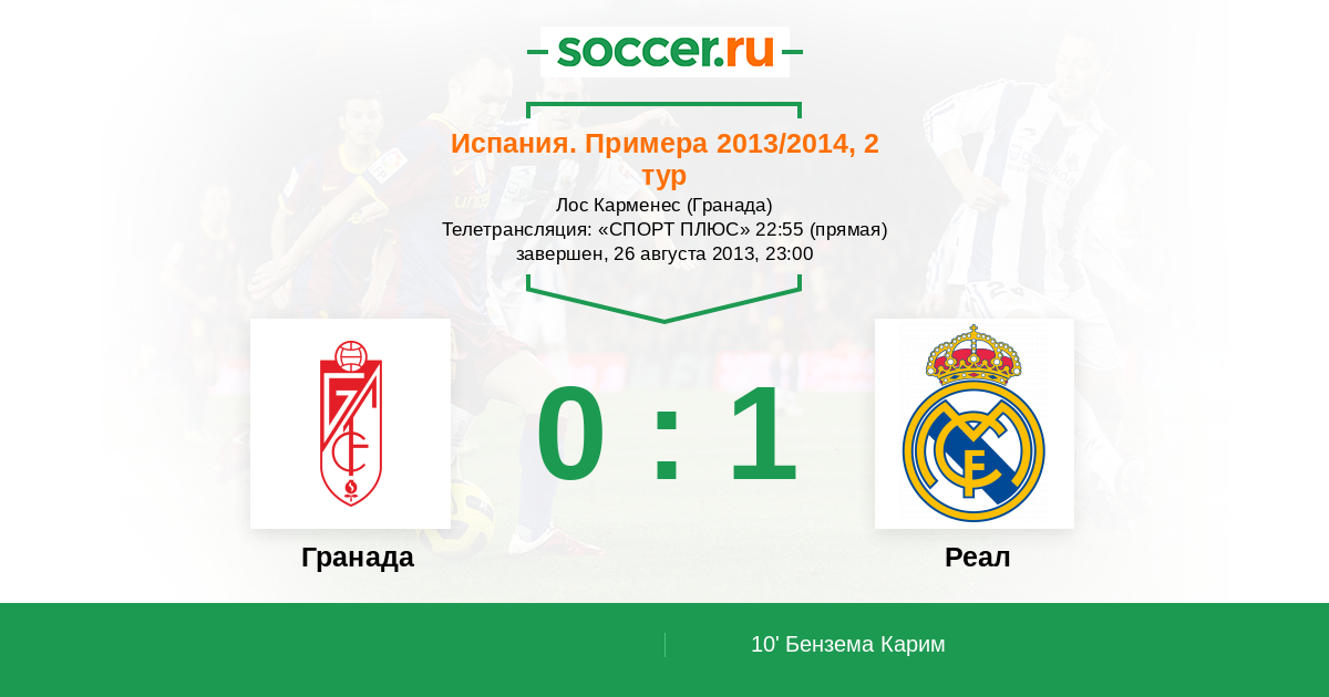 10' (0:1) Бензема Карим (9) (Криштиану Роналду (7))