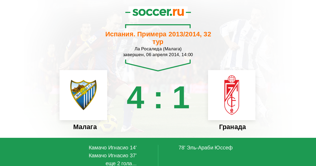 74' (4:0) Хуанми (26) (Гамес Хесус (2))