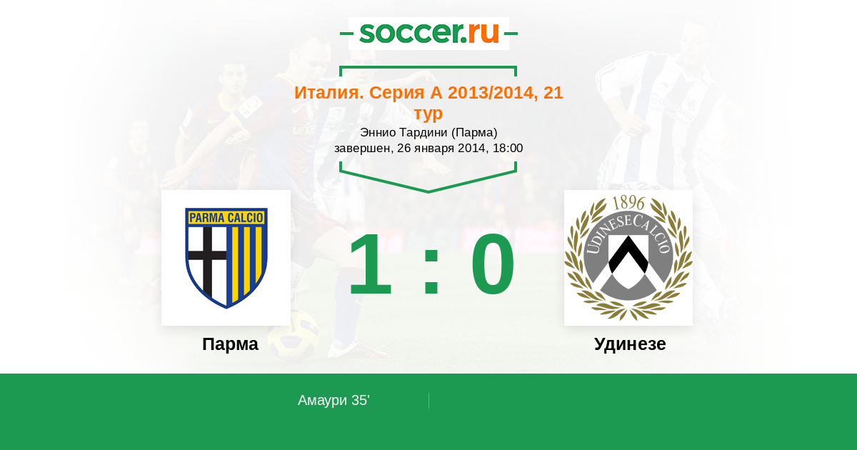 35' (1:0) Амаури (11) (Кассано Антонио (99))