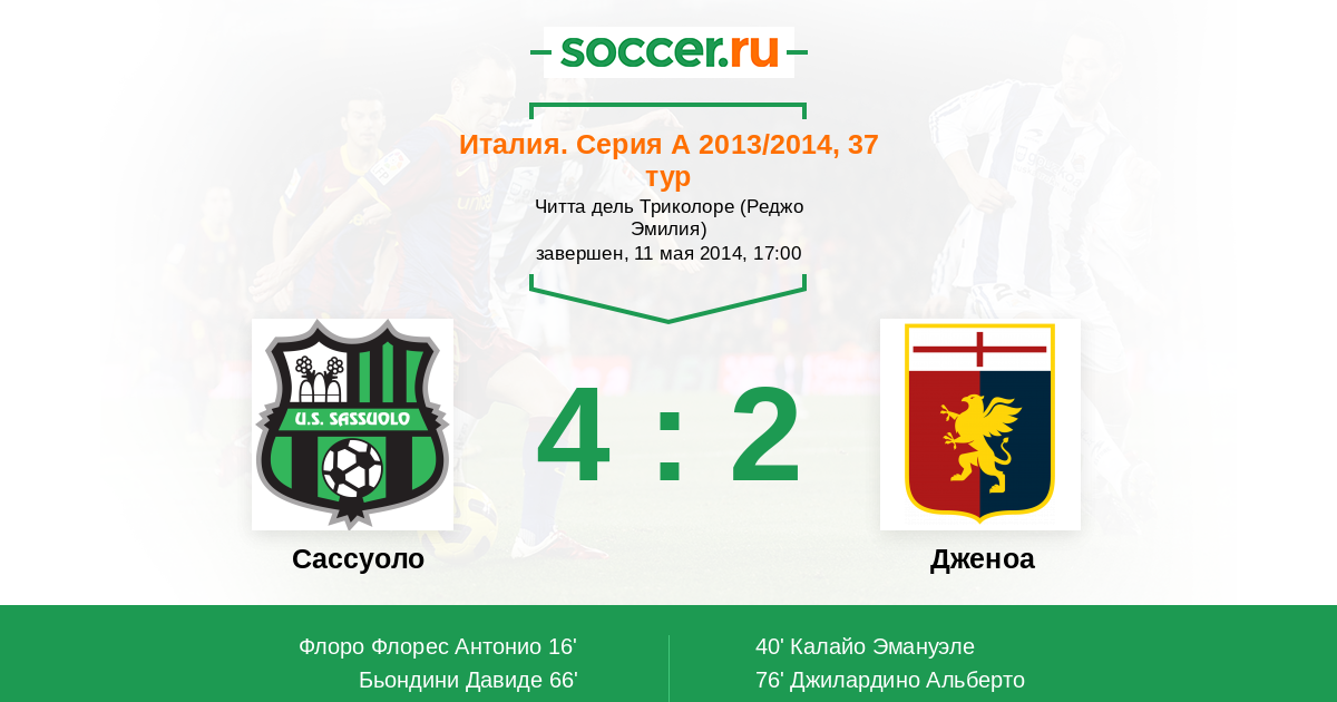 16' (1:0) Флоро Флорес Антонио (83) (Берарди Доменико (25))