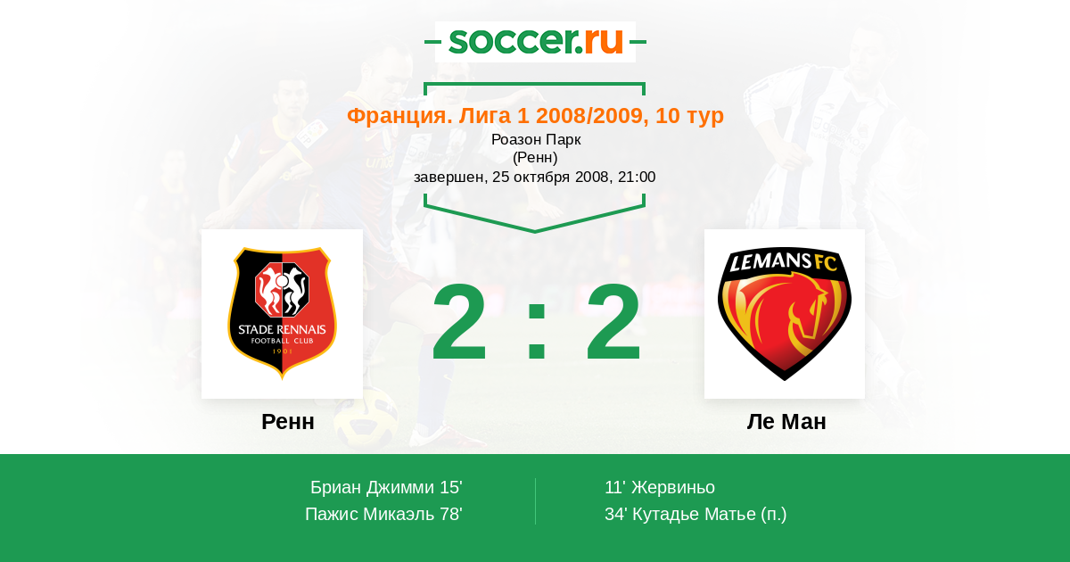 78' (2:2) Пажис Микаэль (Вильторд Сильвен)