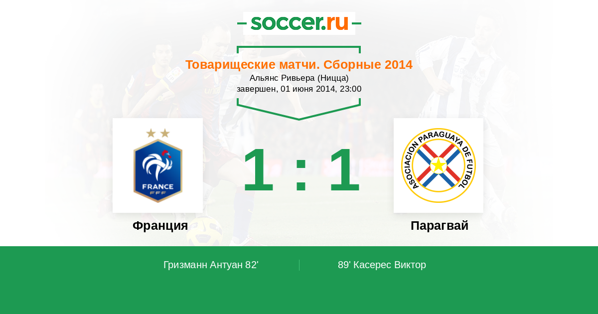 82' (1:0) Гризманн Антуан (11) (Косьельни Лоран (21))