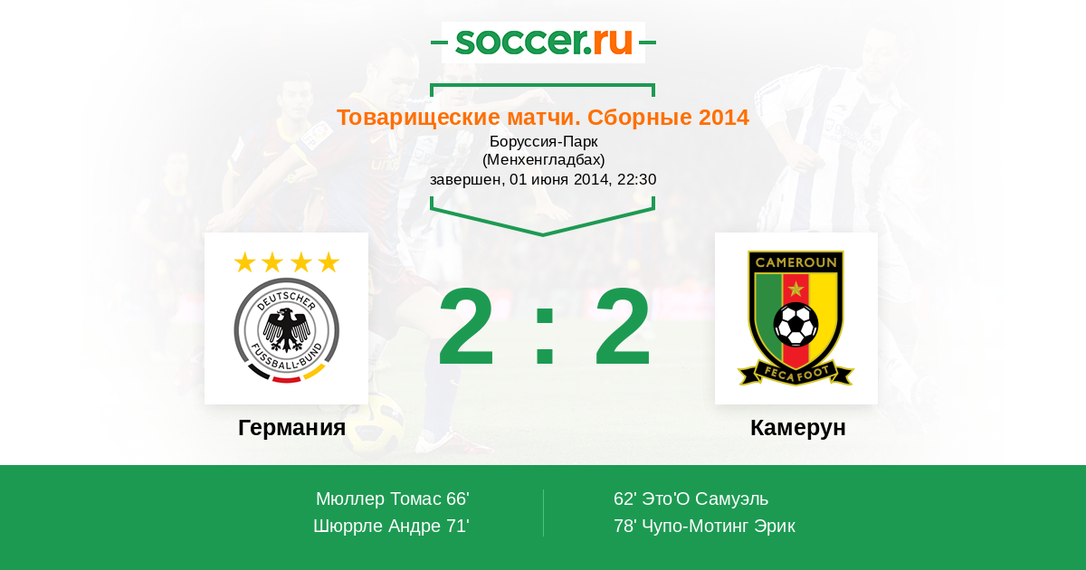 78' (2:2) Чупо-Мотинг Эрик (13) (Эно Эйонг (18))